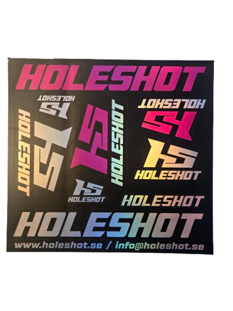 Stick ut på riktigt med Holeshot dekalark i holografisk matt finish. Denna variant ger ett exklusivt och unikt uttryck där färgerna skiftar diskret beroende på ljus och vinkel – utan att bli blänkiga. Perfekt för dig som vill ha en clean men iögonfallande look.