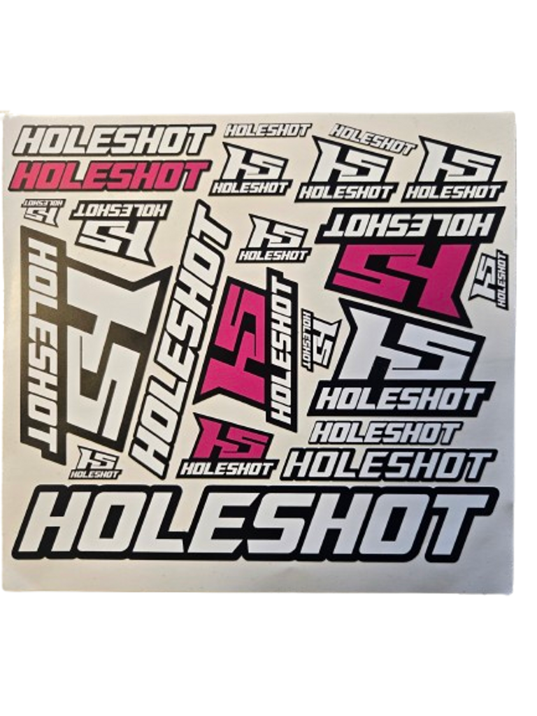 Dekalarket innehåller flera Holeshot-logotyper och HS-symboler i olika storlekar och utföranden.