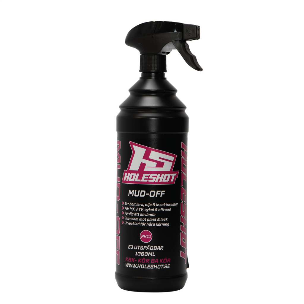 Holeshot MUD OFF är din bästa vän efter en dag i leran. Oavsett om du kör motocross, enduro, ATV, gräsklippare eller mountainbike – den här färdigblandade rengöraren löser tuff lera, oljefilm, bromsdamm och insektsrester på sekunder.
