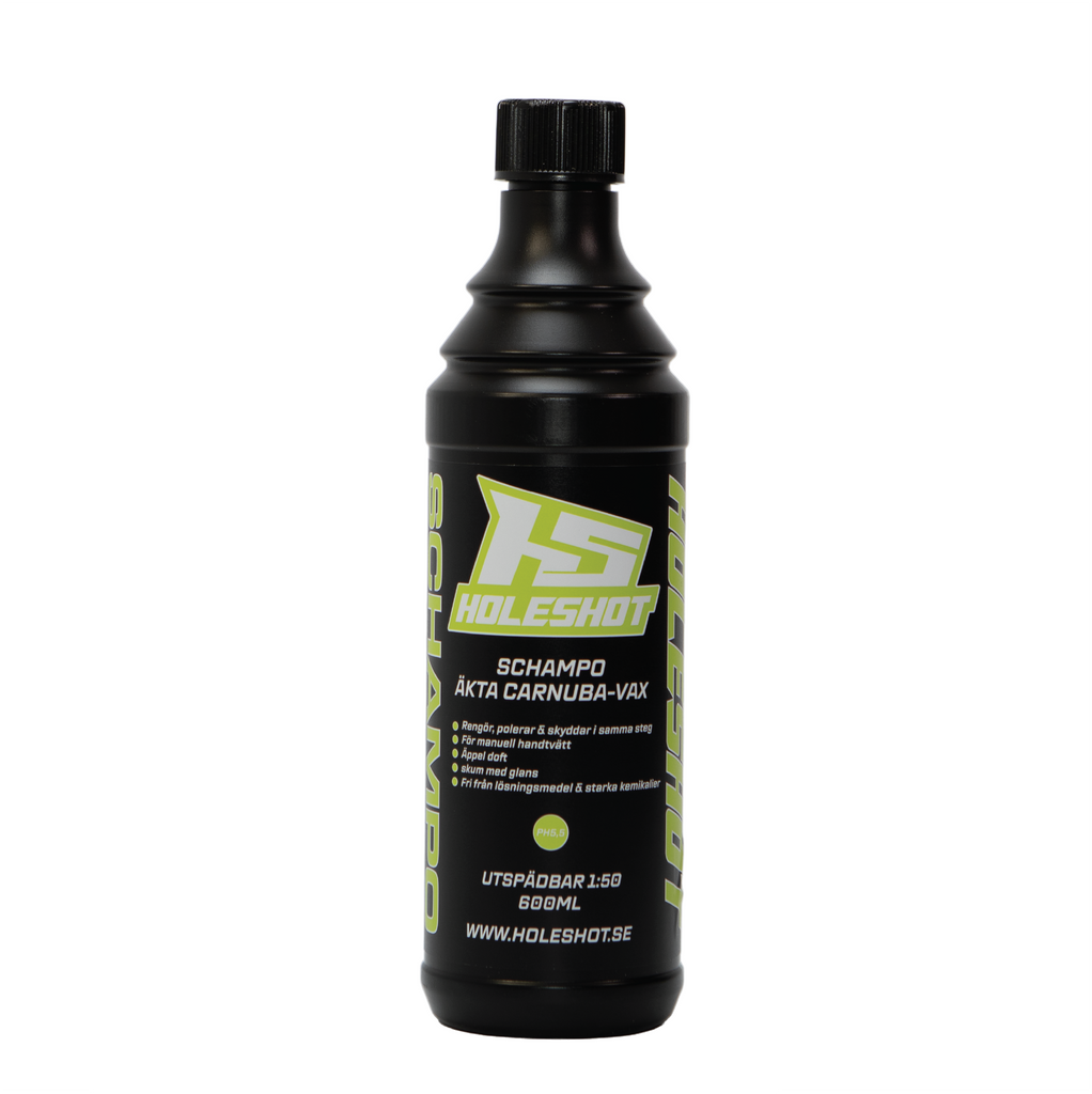 Holeshot Shampo Wax är ett premium schampo för handtvätt, berikat med naturligt Carnauba-vax.